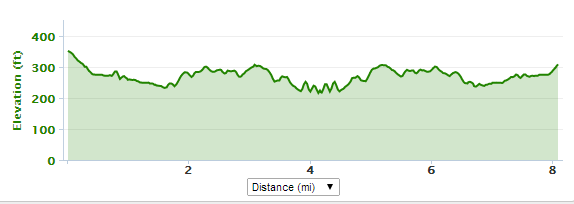 This week, we ran for about 1.5 miles to warm up, and then tackled a steep hill with this profile (about 100 ft climb over 0.2 miles):