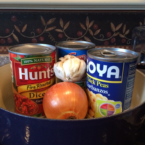 I love the recipes that Deb shares on the Meatless Monday link-up she does with Tina Muir, but I don’t usually make them myself because my husband is not a big fan of vegetables. A few weeks ago, though, she shared this Creamy Chick Pea and Tomato Soup recipe that looked like something my husband would like, so I decided to make it. It was so delicious–and so easy– that I have made it a few times now. Since I am loving it so much, I thought I would share my own variations.