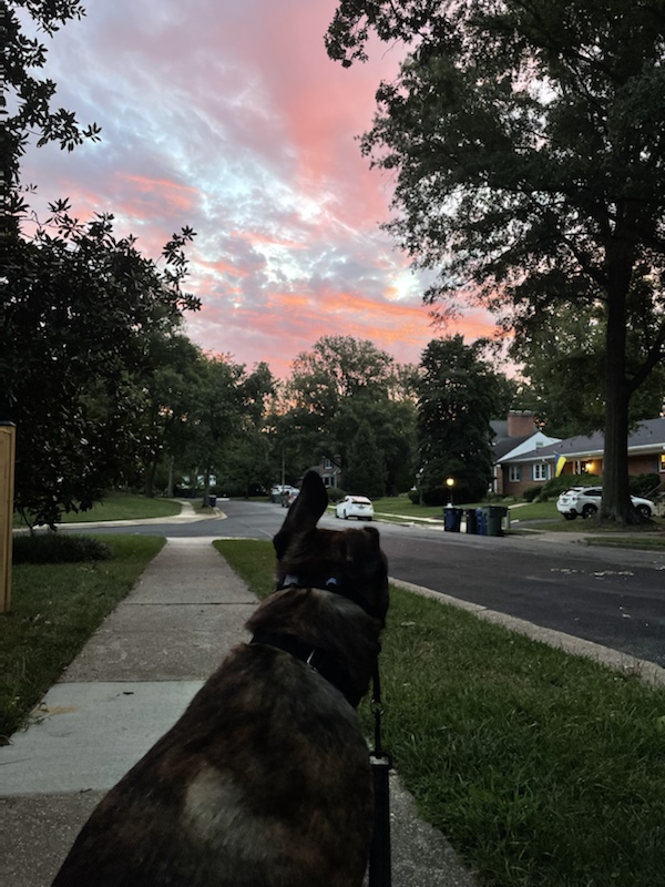 Scooby’s fine on his own most of the day, but now that we can, we do usually trade-off on going-in-to-the-office days. I also usually can leave work mid-afternoon to get home for him — and then log back into work.
