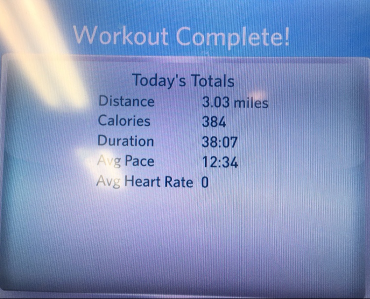 Monday: 3 miles on the treadmill