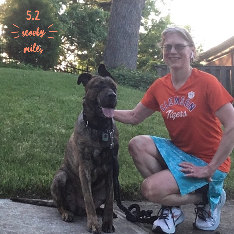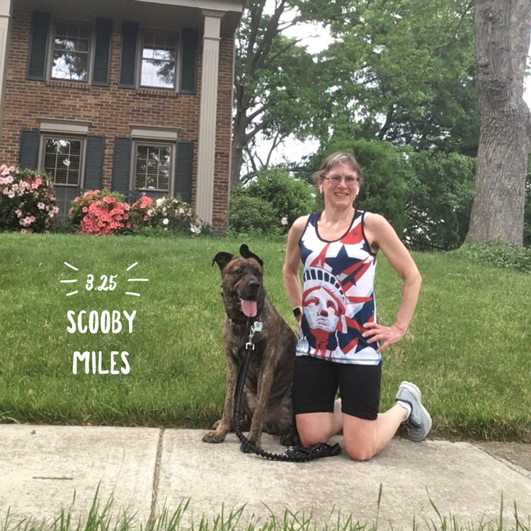I ran with Scooby Monday (5.2), Wednesday (4), Thursday (5.2), Saturday (8.5), and Sunday (3.25).