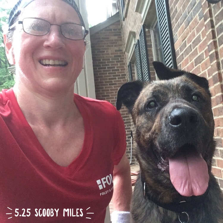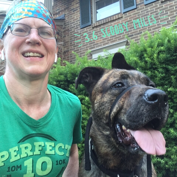 I ran with Scooby Monday (5.25), Wednesday (5), and Thursday (3.6), and ran on the treadmill Saturday (6.0). My Achilles wasn’t very happy after that, so I gave it a day off on Sunday.